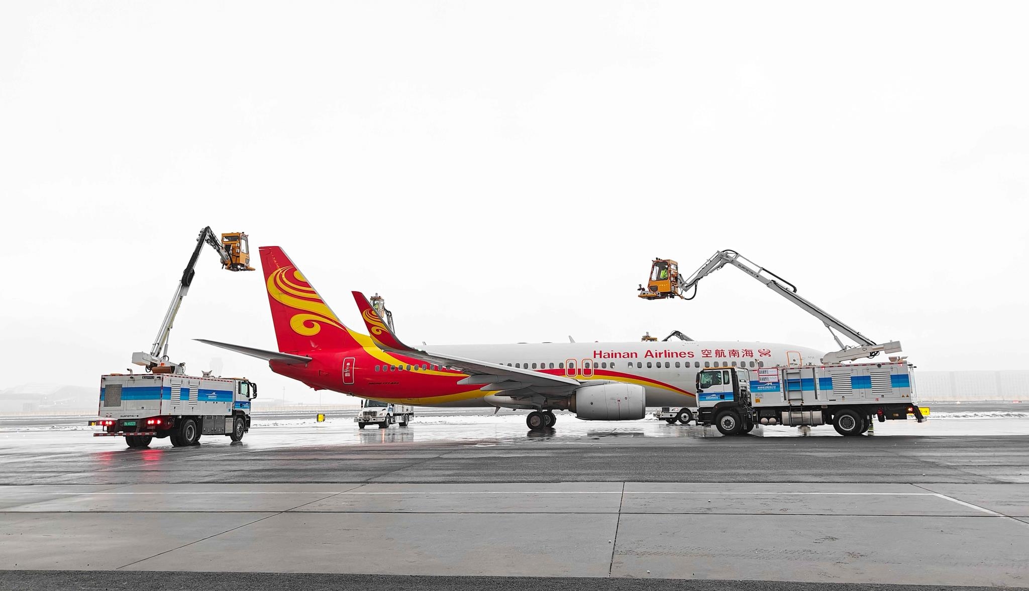 12月2日清晨,烏魯木齊銀裝素裹,為確保每一位旅客的安全有序出行,威海廣泰除冰車高效作業(yè),威海廣泰子公司——廣大航服全力保障,共同與迎接這場風(fēng)與雪的考驗。面對突如其來的降雪,烏魯木齊機(jī)場地面勤務(wù)部領(lǐng)導(dǎo)迅速作出全方位決策,制定應(yīng)對措施,統(tǒng)籌協(xié)調(diào)各保障部門,有序開展?!?