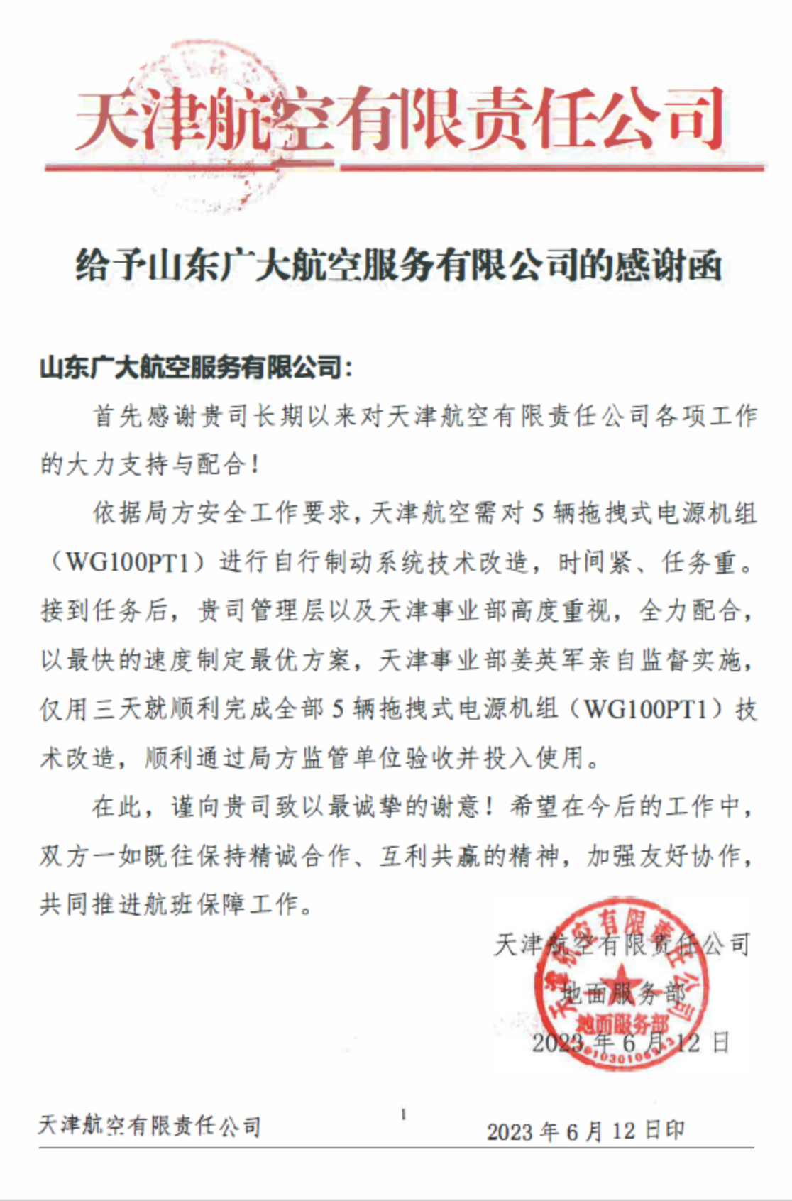 6月初,天津航空公司根據(jù)局方安全管理要求對(duì)五臺(tái)電源機(jī)組進(jìn)行自行制動(dòng)系統(tǒng)技術(shù)改造,改造時(shí)需對(duì)五臺(tái)電源機(jī)組停用??蛻?hù)表示這五臺(tái)機(jī)組是主力車(chē)型,全部停用會(huì)影響正常工作,希望以最快的速度,最短的時(shí)間完成改造。時(shí)間緊任務(wù)重,山東廣大航空服務(wù)有限公司(以下簡(jiǎn)稱(chēng)“廣大航服”)…