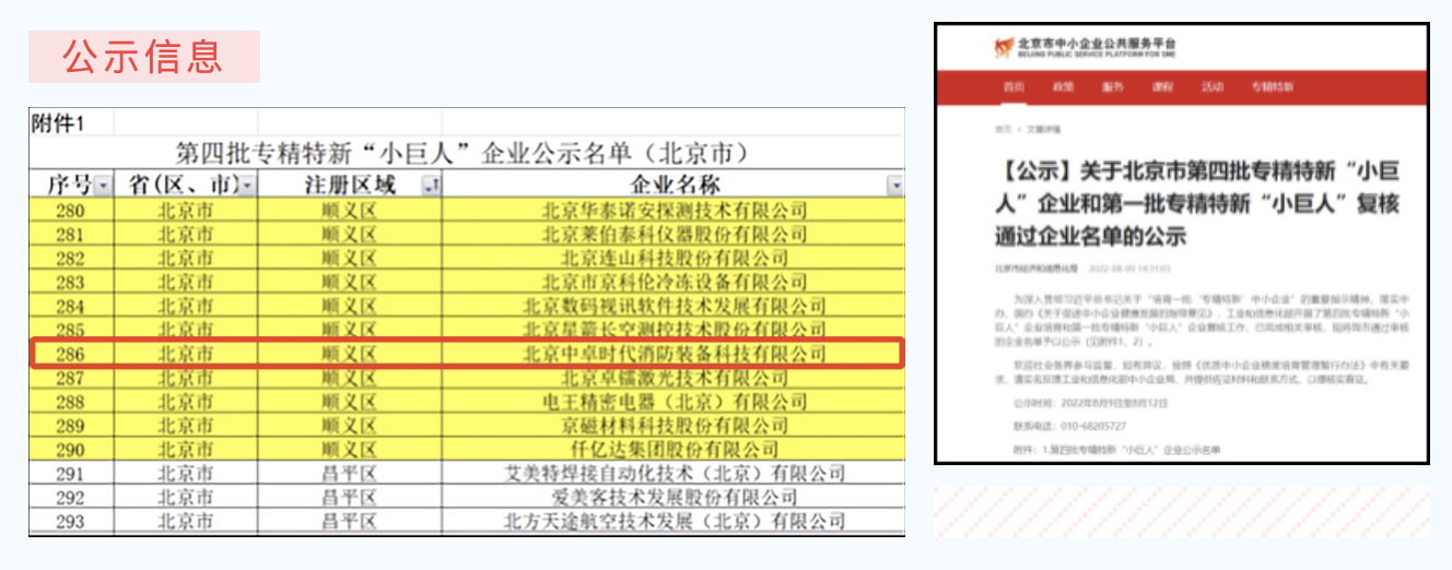 近期,北京市中小企業(yè)公共服務(wù)平臺(tái)公示“關(guān)于北京市第四批專精特新‘小巨人’企業(yè)名單”,北京中卓時(shí)代消防裝備科技有限公司(以下簡稱:中卓時(shí)代)成功入選第四批國家級(jí)專精特新“小巨人”企業(yè)。 專精特新中小企業(yè)具有專業(yè)化、精細(xì)化、特色化、新穎化等四大特征。專精特新“小巨人…