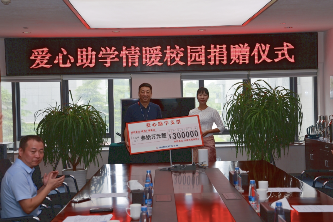 近日,云南大荒田駐村第一書記趙偉率云南大荒田完小校長李梅一行11人來訪威海廣泰,李文軒董事長一行熱情接待并在大廈三樓會(huì)議室進(jìn)行了“愛心助學(xué)情暖校園”捐贈(zèng)儀式。李文軒董事長代表廣泰公司向云南大荒田完小捐贈(zèng)30萬元助學(xué)基金,并代表全體廣泰員工將6月1日捐贈(zèng)的4000冊(cè)愛心圖書…