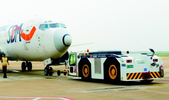 該類設備是牽引和頂推飛機離開機場停機廊橋的地面保障設備,同時還可因飛機故障及維護需要,用于救援、牽引和移動飛機至維修機庫。該設備主要由駕駛室、車架總成、動力傳動系統(tǒng)、蓋板總成、液壓系統(tǒng)和電氣系統(tǒng)組成。