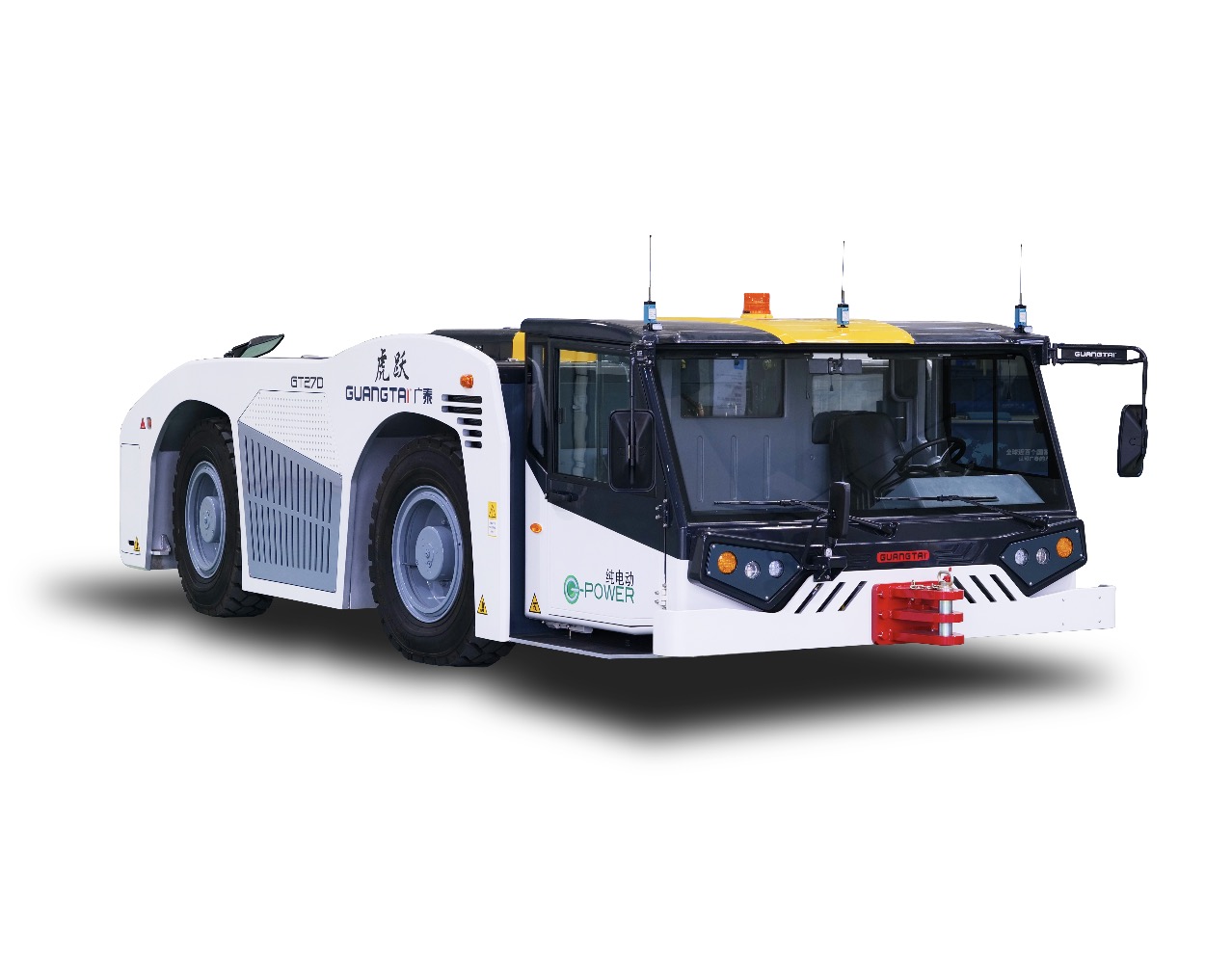 該類設備以純電能為動力,是牽引和頂推飛機離開機場停機廊橋的地面保障設備,同時還可因飛機故障及維護需要,用于救援、牽引和移動飛機至維修機庫。該設備主要由底盤、電動機、電池、變速箱、傳動軸、前后橋、輪胎總成、制動系統(tǒng)、轉向系統(tǒng)、駕駛室、控制系統(tǒng)等組成。