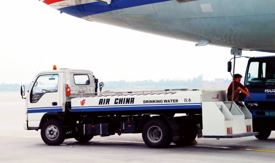 該類設備是通過車載裝置,為飛機提供清潔生活用水的自行式機場地面保障設備。該設備由汽車底盤、水箱總成、尾部框架總成、供水系統(tǒng)、液壓系統(tǒng)和電氣控制系統(tǒng)組成。